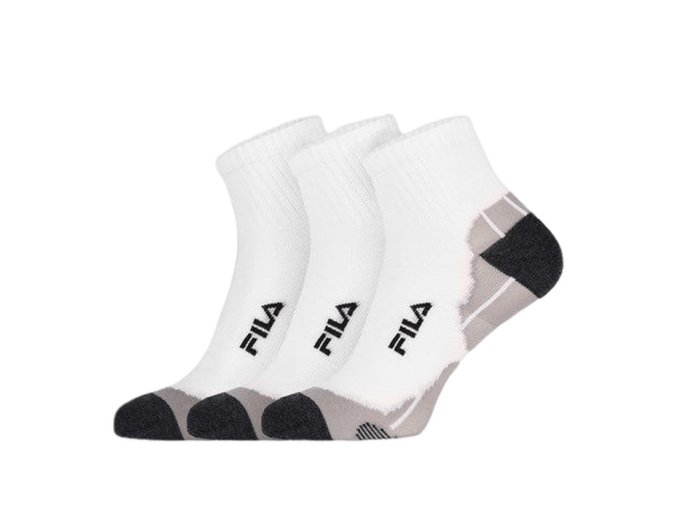 Bílé unisex ponožky FILA. Prodyšné, odvádějí vlhkost. S plochými švy, které nedráždí pokožku. Vhodné na sportovní aktivity.