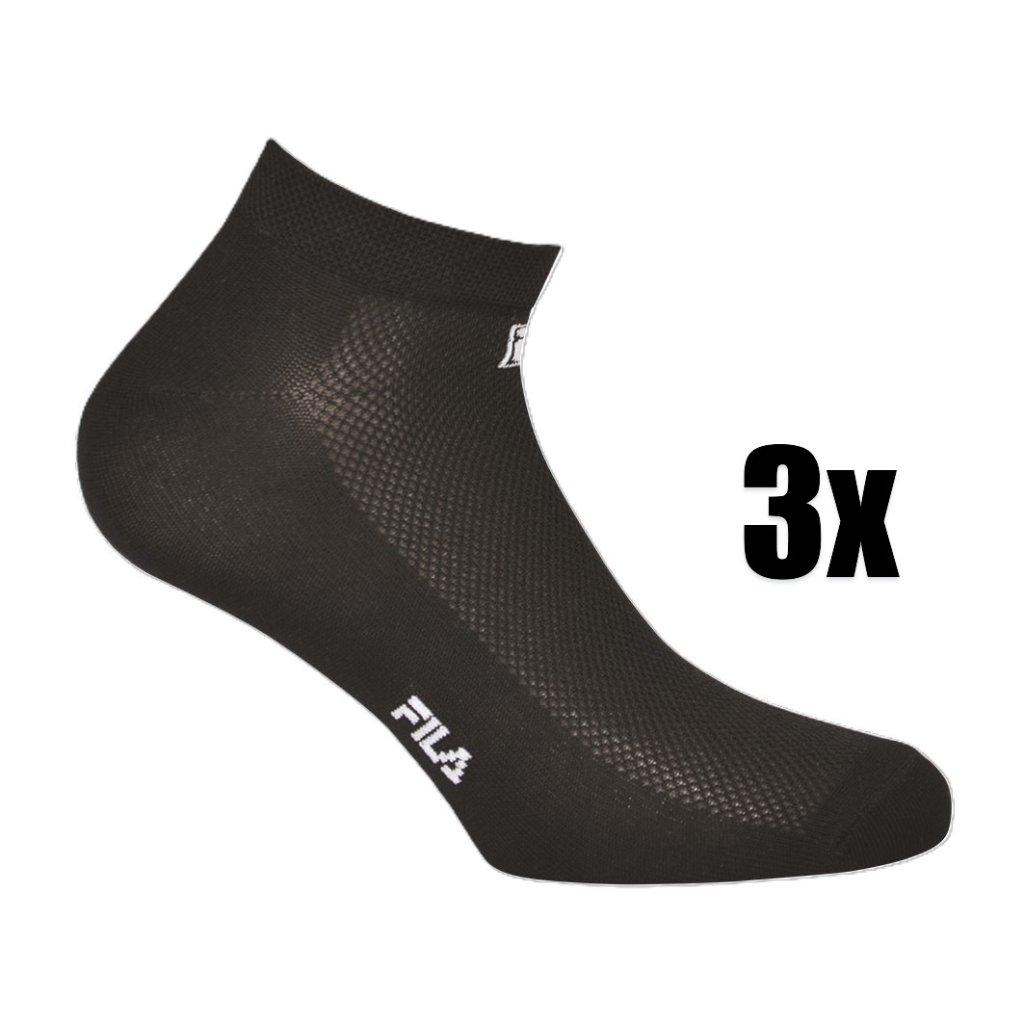 Unisex kotníkové ponožky FILA v černé barvě. S vysokým podílem bavlny. Balení obsahuje 3 páry.