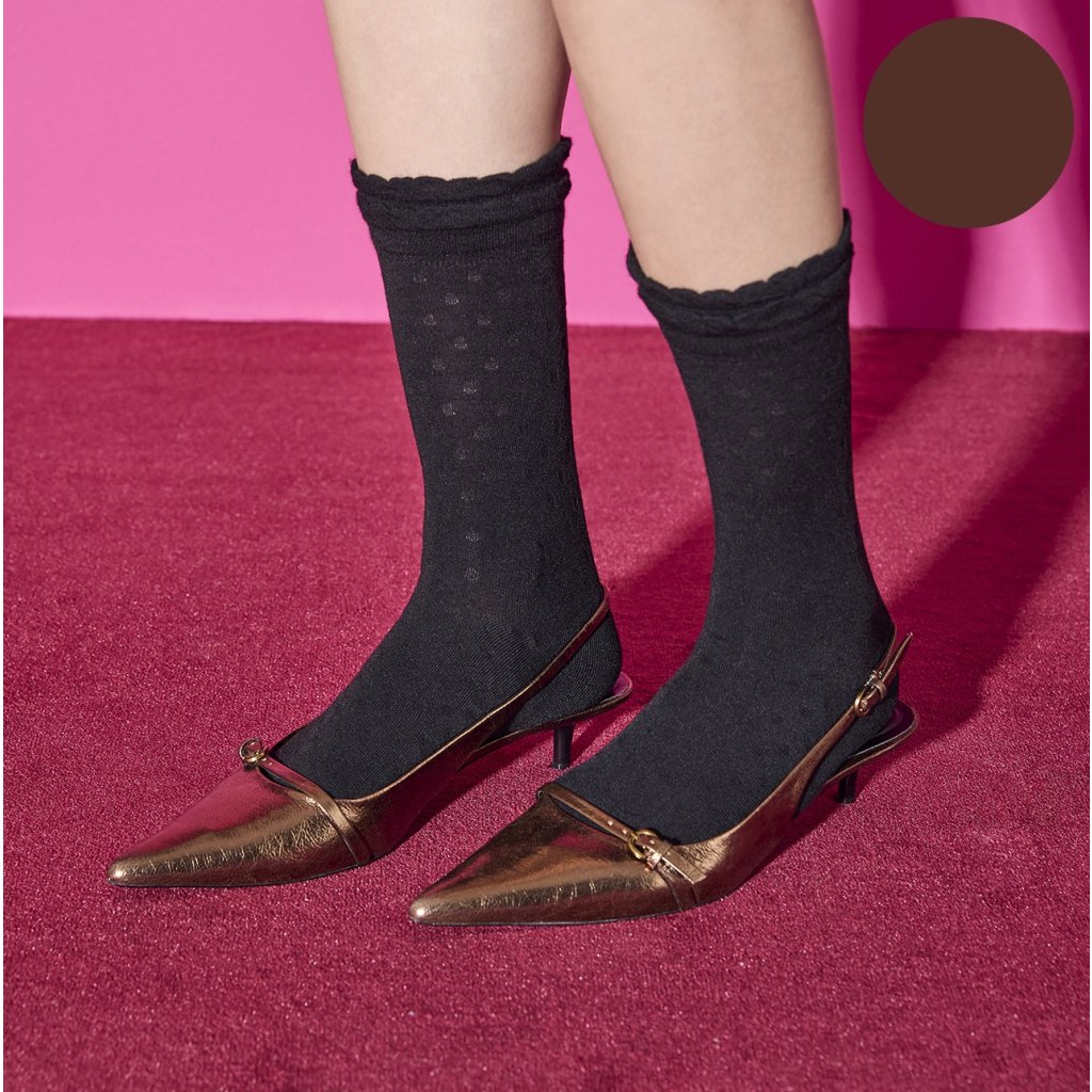 Designové ponožky z modalu a kašmíru s puntíkovým vzorem. Pohodlný lem s dvojitým řasením, anatomicky tvarovaná špička a pata. S označením kvality a nezávadnosti Oeko-Tex® Standard 100.