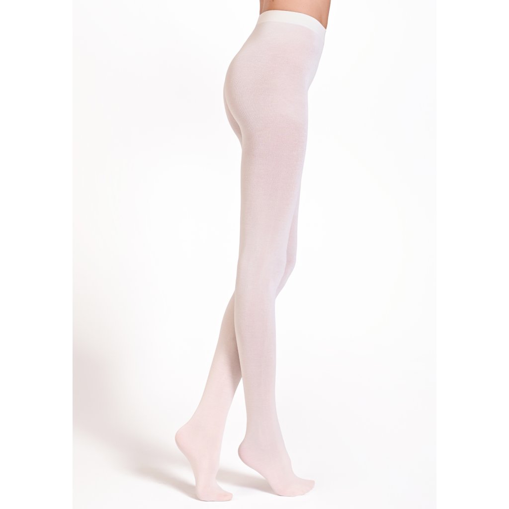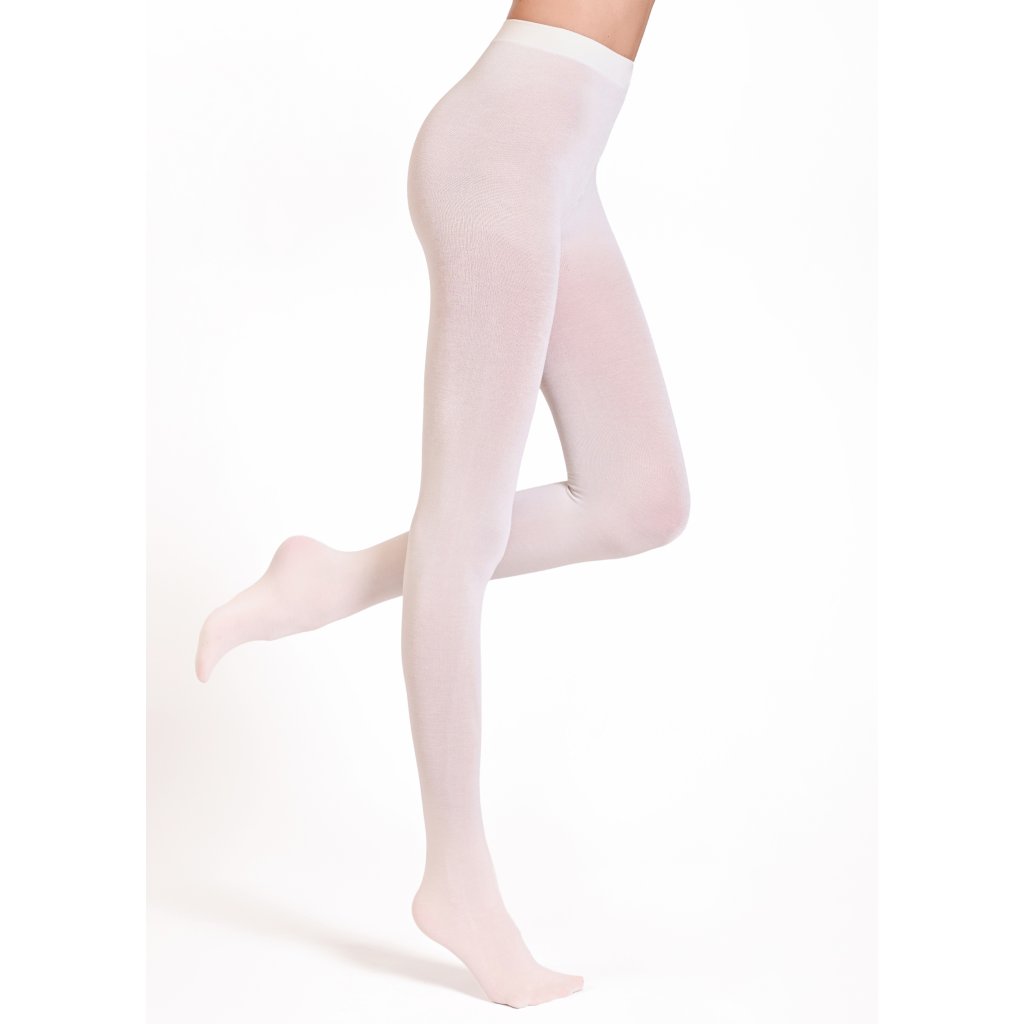 Krycí punčochové kalhoty v trendy bílém provedení. Matné, s vyšším pasem. S příměsí modalu a hedvábí. Balení obsahuje 1 kus.